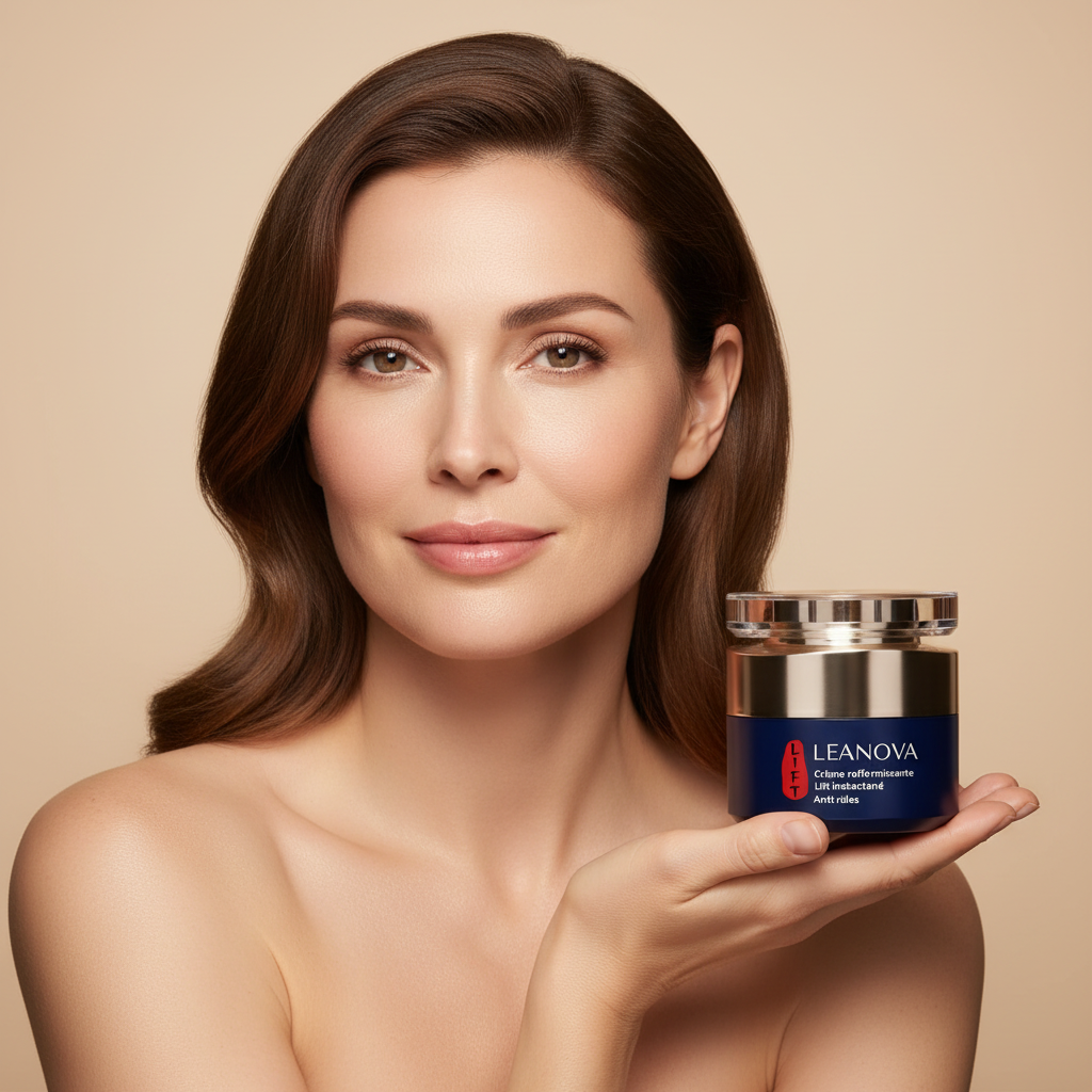 "La Crème Lift Japonaise Leanova agit précisément à ce niveau. Sa combinaison de peptides raffermissants, d’acide hyaluronique et de filtrat d’escargot offre une action synergique : les peptides stimulent les fibroblastes, le filtrat d’escargot soutient la régénération cellulaire, et l’acide hyaluronique hydrate en profondeur pour lisser immédiatement la surface de la peau."